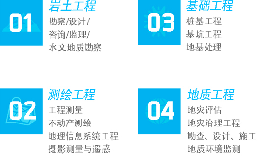 公司通過產(chǎn)業(yè)結構調整、業(yè)務轉型升級,實現(xiàn)跨越式發(fā)展,成為了集巖土工程勘察設計、測繪地理信息工程、地質環(huán)境工程、基坑與樁基礎工程四大主業(yè)于一體的綜合性工程技術公司。作為湖北省工程勘察和基礎施工行業(yè)的排頭兵,現(xiàn)主要從事巖土工程勘察、設計、測試、檢測、監(jiān)測,工程測量,不動產(chǎn)測繪,地理信息系統(tǒng)工程,攝影測量與遙感,地質災害危險性評估與礦產(chǎn)壓覆評價,地質災害治理工程勘查、設計、施工,城市綜合地質調查,樁基礎工程施工及基坑工程施工,不動產(chǎn)登記代理、咨詢工作及軟件工程開發(fā)。